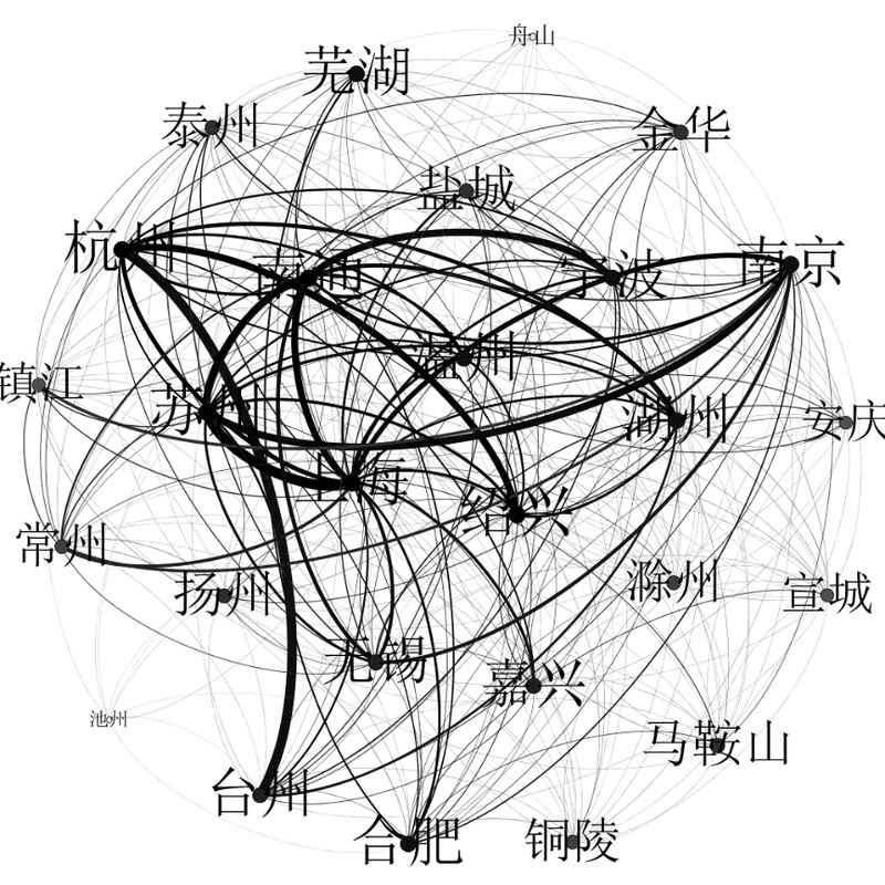 图2 长三角中心区27个城市高端装备制造业专利合作网络拓扑图