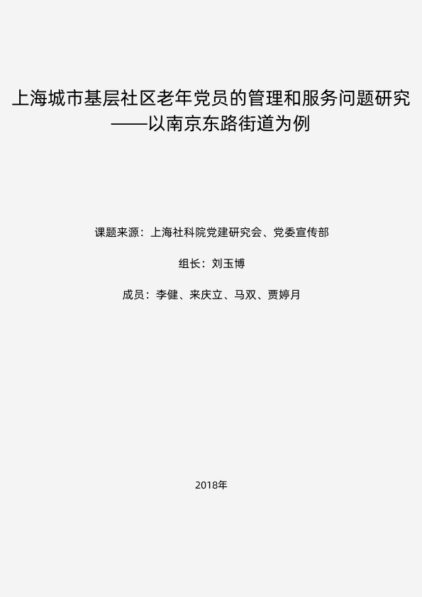 上海城市基层社区老年党员的管理和服务问题研究——以南京东路街道为例