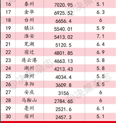 综合41市经济总量来看,整体格局没有明显变化,与2023年相比,温州超越徐州,名次前进一位。金华反超台州、亳州超过宿州、六安超越衢州,实现了排名上升。