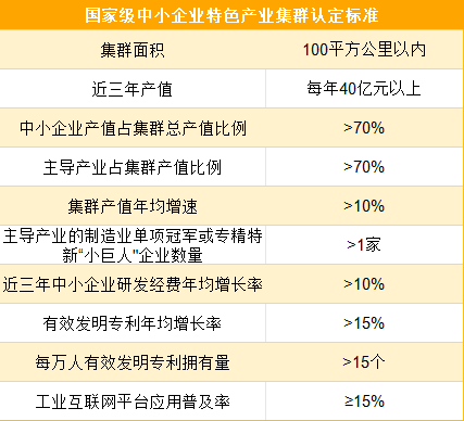 表:国家级中小企业特色产业集群认定标准